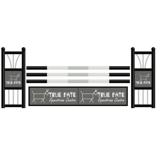 A bespoke show jump advertising your company. This will be used regularly as part of the show jumping course.